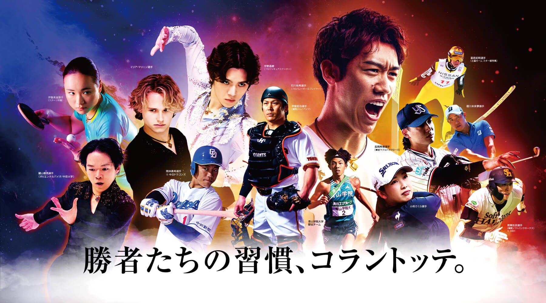 卓球の伊藤美誠選手、フィギュアスケートの宇野昌磨選手、バレーボールの石川祐希選手など、世界で戦うトップアスリートがコラントッテを愛用しています。極限状態でのパフォーマンス向上を求められるアスリートたちから選ばれることが、その効果の確かさを物語っています。