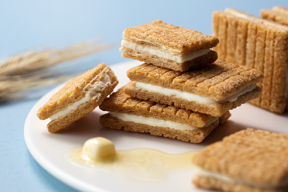 和菓子の「はさみ焼き」技術を採用し、油分が適度に抜けて食感がよくなる特殊な製法を確立。オリジナルブレンドの小麦とフレッシュバターをたっぷり使用し、豊かな風味を楽しめるクッキーに仕上げています。
