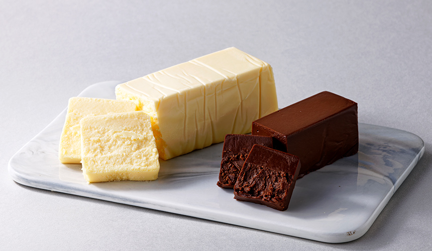 看板商品「ドゥーブルフロマージュ」は、イタリア産マスカルポーネチーズのレアチーズケーキとオーストラリア産クリームチーズのベイクドチーズケーキが2層になった革新的な構造。口に入れた瞬間、まるで雪のようにとろけだし、一瞬で満ちていく、ふくよかなミルク感と上品な甘さが絶妙なハーモニーを奏でます。この独特な食感から「奇跡のチーズケーキ」と称され、北海道を代表するスイーツとして確固たる地位を築いています。